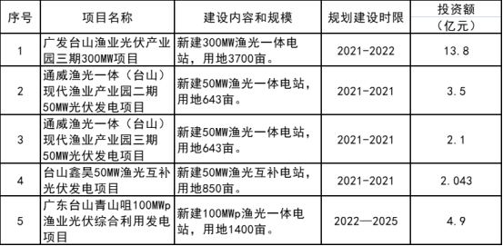 6月20日,台山市人民政府关于印发《台山市能源发展“十四五”规划(2021-2025年)》的通知,通知指出,新开工的光伏项目700MW,详情如下: