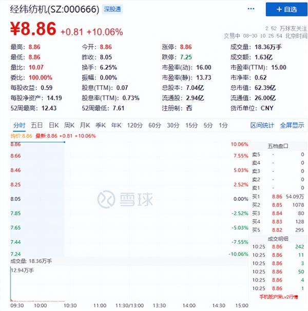 经纬纺机复牌一字涨停