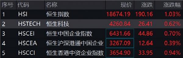港股市场今日高开:恒指涨0.95%,恒生国企涨0.98%,恒生科技涨1.54%。早间中芯国际涨超4%,领涨蓝筹股。上午港股冲高回落,比亚迪电子领涨恒生科技。