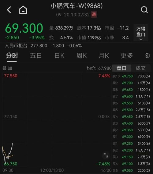 20日早盘,港股低开,其中造车新势力“三剑客”集体走低。