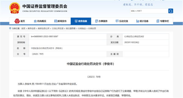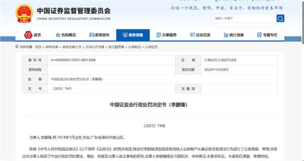 转载请标注:信息网——首次明确!亲属间股票账户也不能借,证监会开出顶格罚单!他被罚款50万