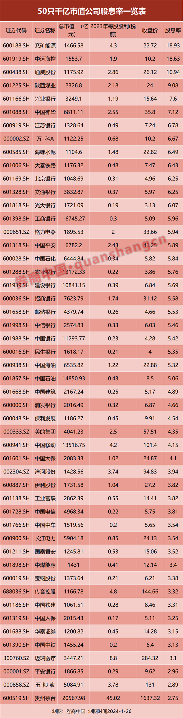 转载请标注:信息网——存银行还是买股票?这些公司股息率已远超5年期银行定存