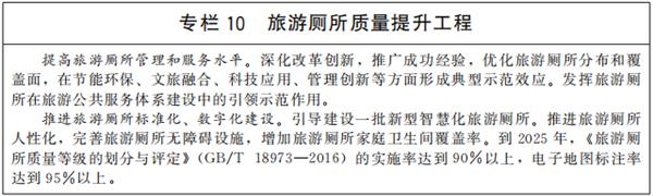 国务院印发“十四五”旅游业发展规划。到2025年,旅游业发展水平不断提升,现代旅游业体系更加健全,旅游有效供给、优质供给、弹性供给更为丰富,大众旅游消费需求得到更好满足。疫情防控基础更加牢固,科学精准防控要求在旅游业得到全面落实。国内旅游蓬勃发展,出入境旅游有序推进,旅游业国际影响力、竞争力明显增强,旅游强国建设取得重大进展。文化和旅游深度融合,建设一批富有文化底蕴的世界级旅游景区和度假区,打造一批文化特色鲜明的国家级旅游休闲城市和街区,红色旅游、乡村旅游等加快发展。