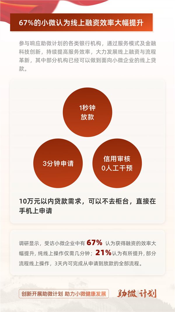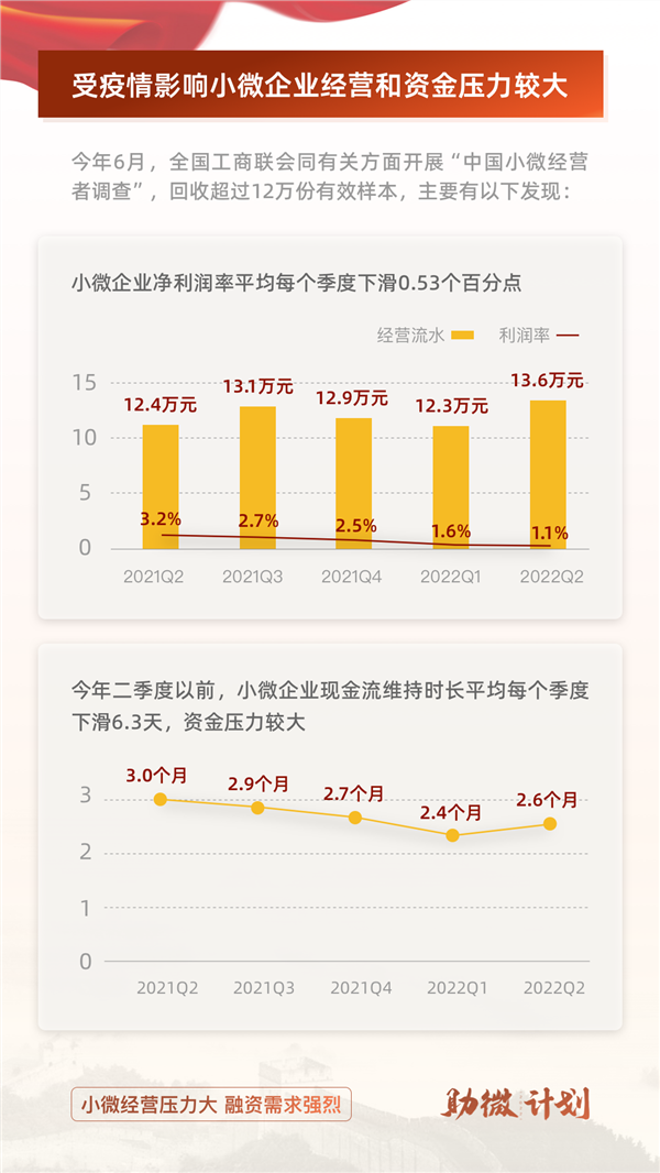 据了解,为缓解小微融资难题,自2020年以来,全国工商联会同多家行业协会,以及工商银行、中国银行、农业发展银行、平安银行和网商银行等多家金融机构,连续两年开展“助微计划”,助力小微复工复产、健康发展。
