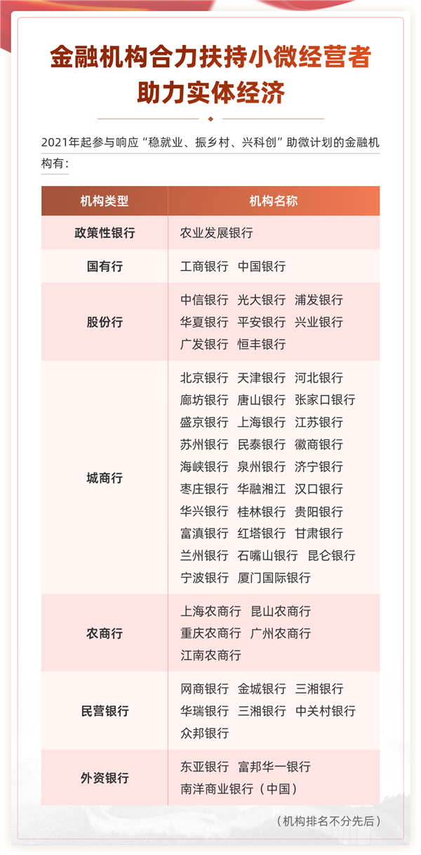 图示:“稳就业、振乡村、兴科创”助微计划的参与银行