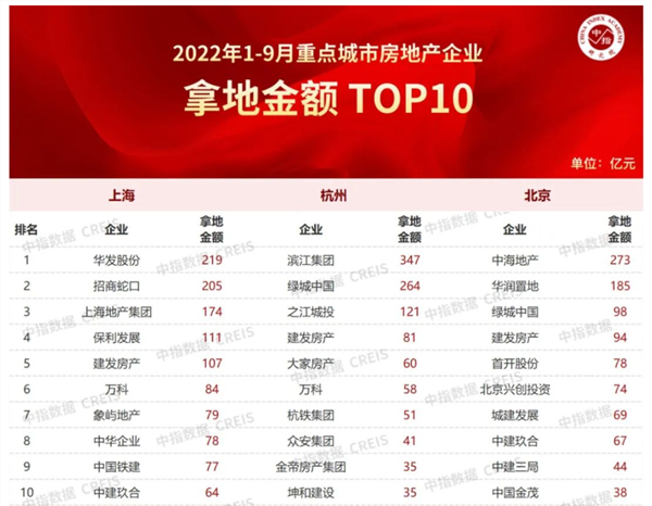 中指研究院的数据显示,9月份50家代表房企拿地总额环比大幅上涨130.2%。北京、上海、深圳、杭州、苏州、宁波等十个城市进行了第三批集中供地,热点城市土地供应较上月显著增加,房企拿地投资力度较上月显著回升。