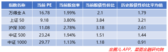 从上市以来分位值来看,上周几大指数估值都出现了下滑,尤其是代表科创成长的科创50和深证成指,环比下修幅度最大,分别-2.89pct、-2.09pct,创业板指紧随其后,环比-1.93pct;上证系指数周内表现较好,受市场资金追捧从而比较抗跌,环比下滑幅度最小;大部分主要指数依旧在底部区间震荡,深证成指分位数还在40%左右。