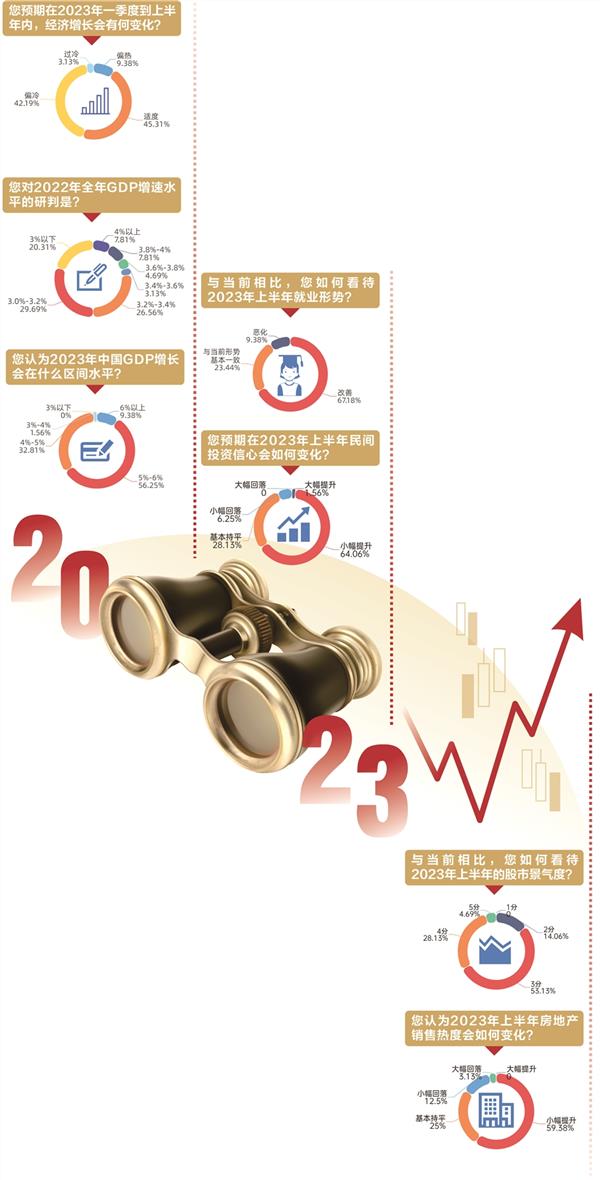 在部分受访者看来,新的一年中国经济显著修复或将从二季度开始。民生银行首席经济学家温彬对记者说,新冠病毒流行期之后,预计二季度社会生产生活秩序会加快恢复,经济活力加速释放,消费、服务业生产和就业都将会有明显改善。整体判断2023年我国经济走势大概率呈现前低后高。