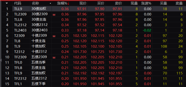 债券市场开启狂飙模式。银行间主要利率债收益率快速下行,10年期国开活跃券“23国开05”收益率下行2.41bp,10年期国债活跃券“23附息国债12”收益率下行3bp。国债期货全线高开,30年期主力合约涨0.22%,10年期主力合约涨0.23%,5年期主力合约涨0.12%,2年期主力合约涨0.04%。