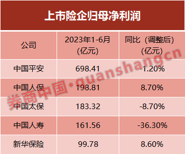 中国人保作为财险公司影响最小,上半年实现净利润198.81亿元,同比增长8.7%。