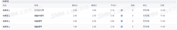 电解液价格