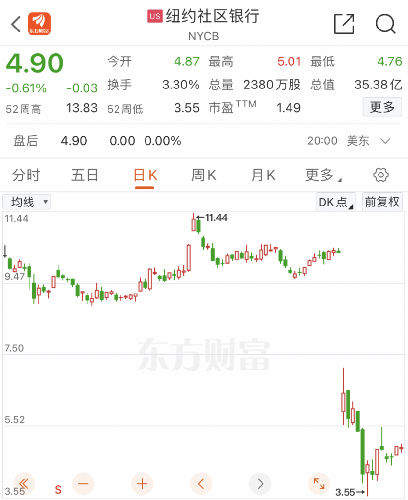 今年1月31日,纽约社区银行股价单日暴跌超37%,截至最新收盘,年内累计跌幅达到51.6%。这显示出,资金对美国银行的商业地产贷款的担忧。
