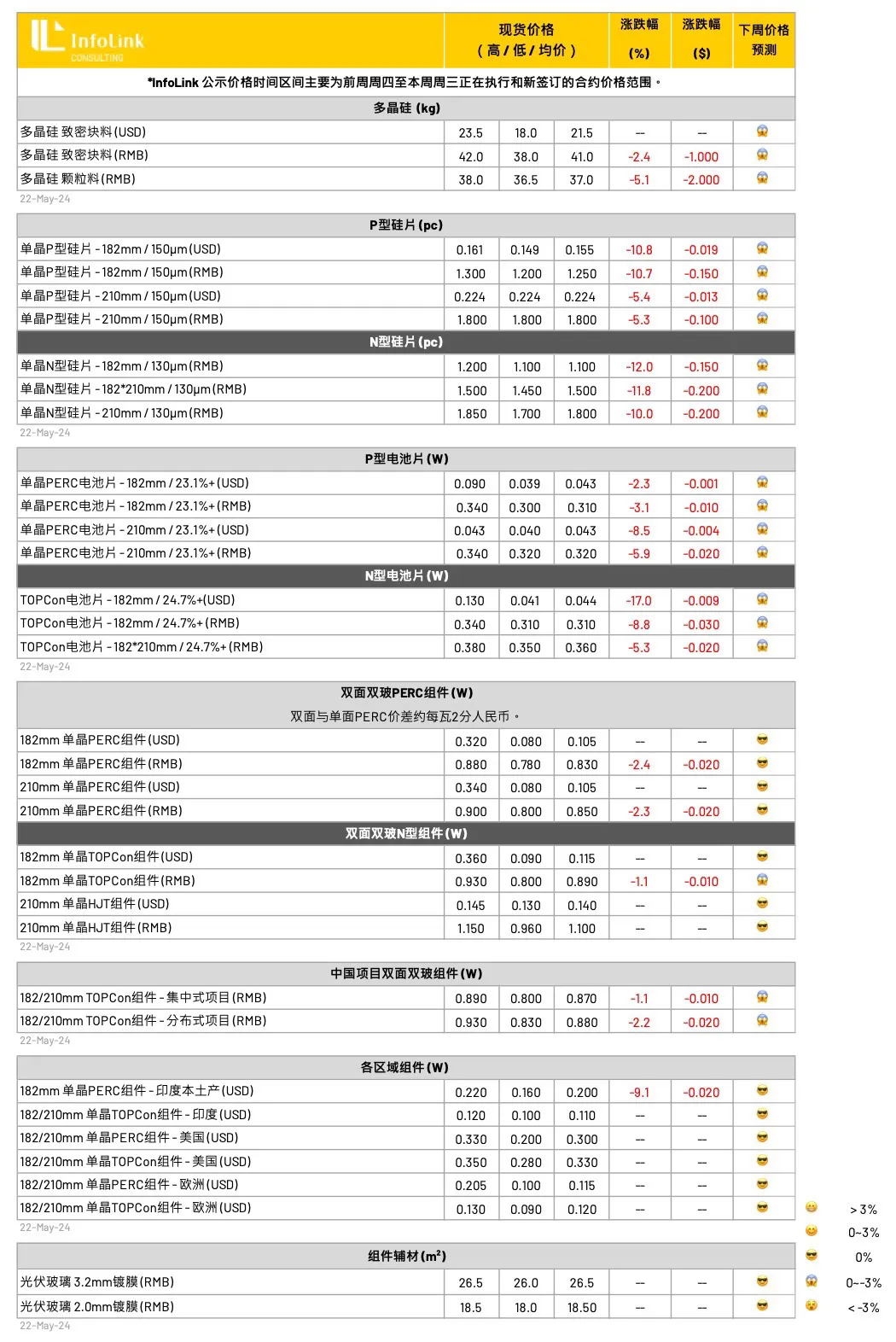 随着供应链快速下探价格,项目观望情绪持续增加,目前国内较多以集采项目、及工商业项目执行为主,海外需求平淡、欧洲需求近期疲软,部分组件库存小幅攀升,不排除整体五月稼动率不及预期,或将延续至六月。