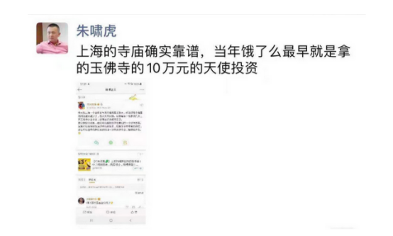 金沙江创投董事总经理朱啸虎转发此消息表示,上海的寺庙确实靠谱,当年饿了么最早就是拿的玉佛寺的 10 万元的天使投资。