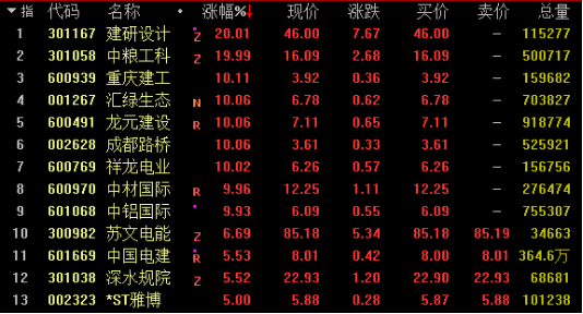 网络整理 2025-11-16 05:07今日基建板块大幅走高,截止发稿,建研设计、重庆建工、龙元建设、成都路桥、中材国际、中铝国际涨停;中国电建、深水规院等个股涨幅超5%。
