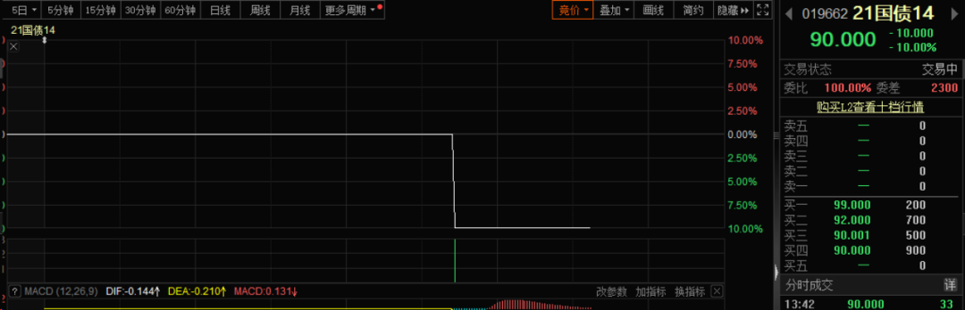 从行情软件来看,该券当时有一笔2.97万元的砸单,直接将该券砸向90元。然而,从国债期货市场来看,今天国债市场相对平稳,各期限国债都有一定涨幅。