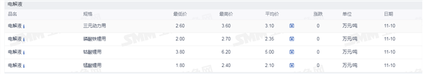网络整理 2025-09-01 13:27证券之星新能源车行业周报:据上海有色网,截止11月10日,电池级碳酸锂14.8-15.8万元/吨,均价15.3万元/吨,环比上一工作日下滑0.2万元/吨;工业级碳酸锂14.3-14.9万元/吨,均价14.6万元/吨,环比上一工作日下滑0.1万元/吨。上游锂盐企业更多以长单出售为主,挺价心态依旧,但个别锂盐企业随行就市小幅下调出售价格,下游正极材料企业出于降本增效策略,其散单拿货情绪也依旧低迷,近期碳酸锂现货市场成交价格仍呈现下行趋势。