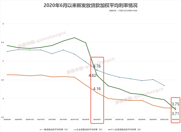 2024年3月,新发个人住房贷款利率有公开记录以来,首次低于新发企业贷款加权平均利率,达到3.71%。