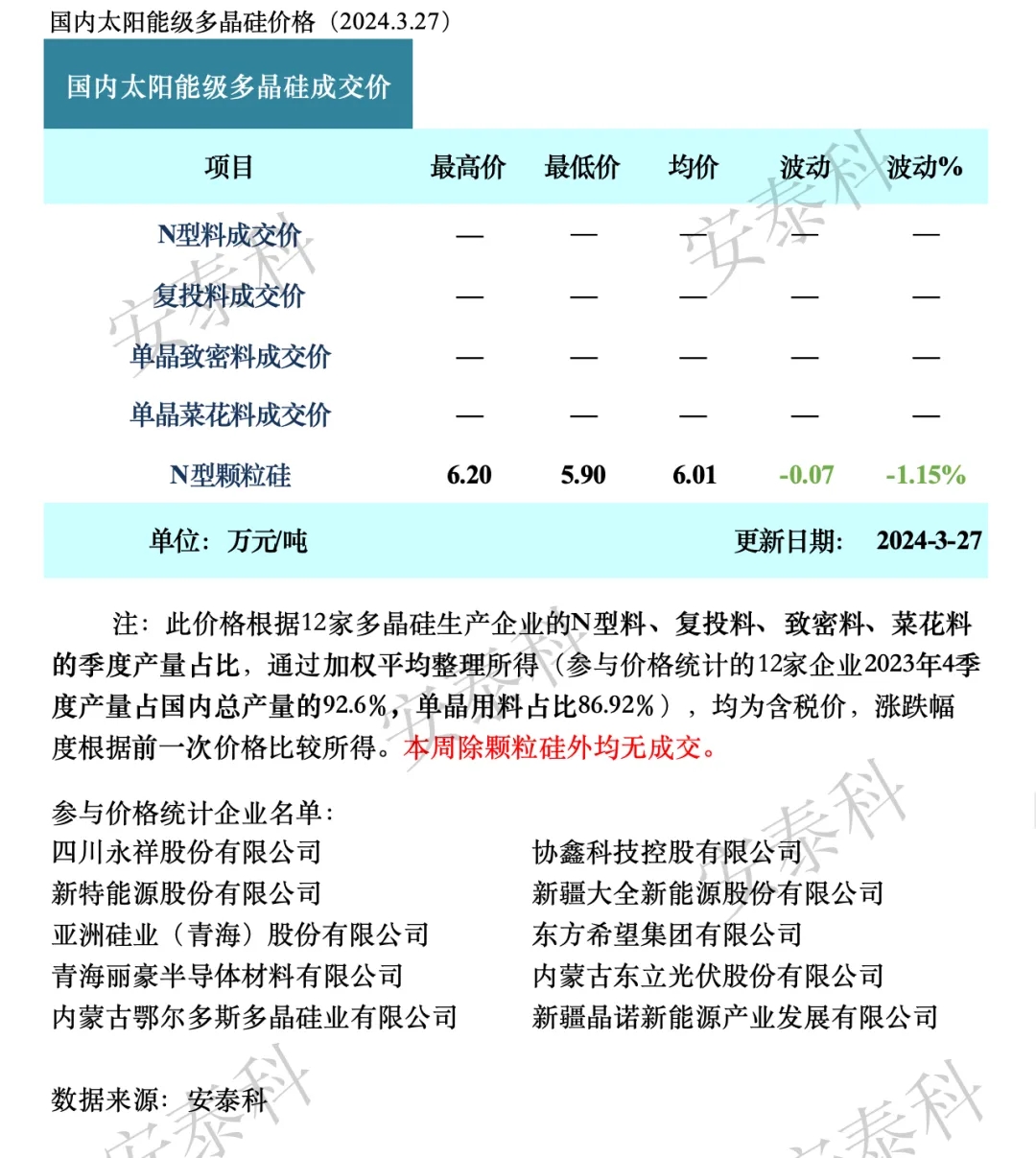 转载请标注:信息网——光伏周报:本周除颗粒硅外均无成交!这一多晶硅企业正式破产