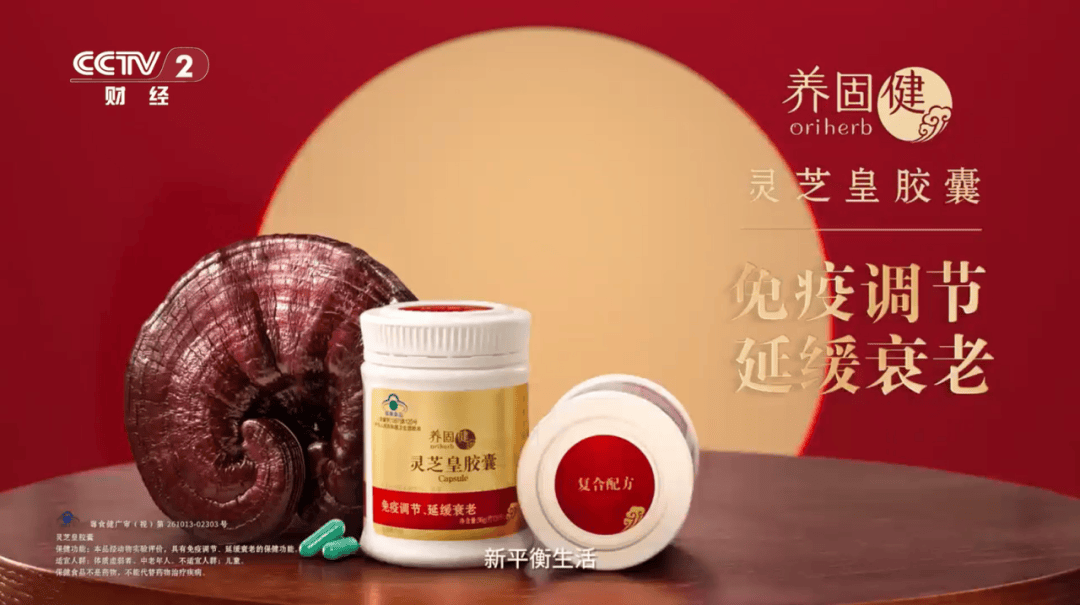无限极凭借连续9年与《消费主张》的合作,形成稳定的品牌传播阵地。2025年4月,旗下核心品牌养固健的新版灵芝皇胶囊广告正式登陆栏目,持续输出“新平衡主义”理念,将中华养生智慧与现代生活需求结合,推广“三调养四合理”的健康方式。