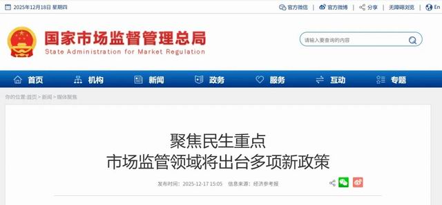 网络整理 2026-01-05 05:0512月16日,在市场监管总局四季度新闻发布会上,记者获悉,围绕规范平台经济、强化食品安全、加强反垄断反不正当竞争、加强和保障纤维制品质量安全监管等多个民生重点领域,市场监管总局将出台多项新的政策文件。